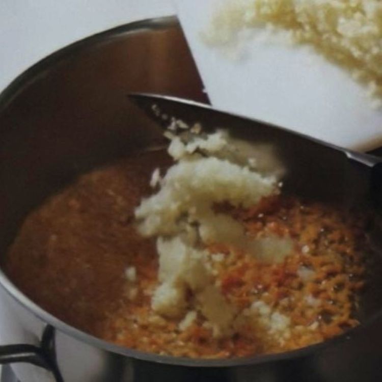 Maak 200 gram worteln,200gram uien en 2 teentjes knoglook schoon en hak ze fijn.verhit 4 eetlepels olie en bak alles daarin aan